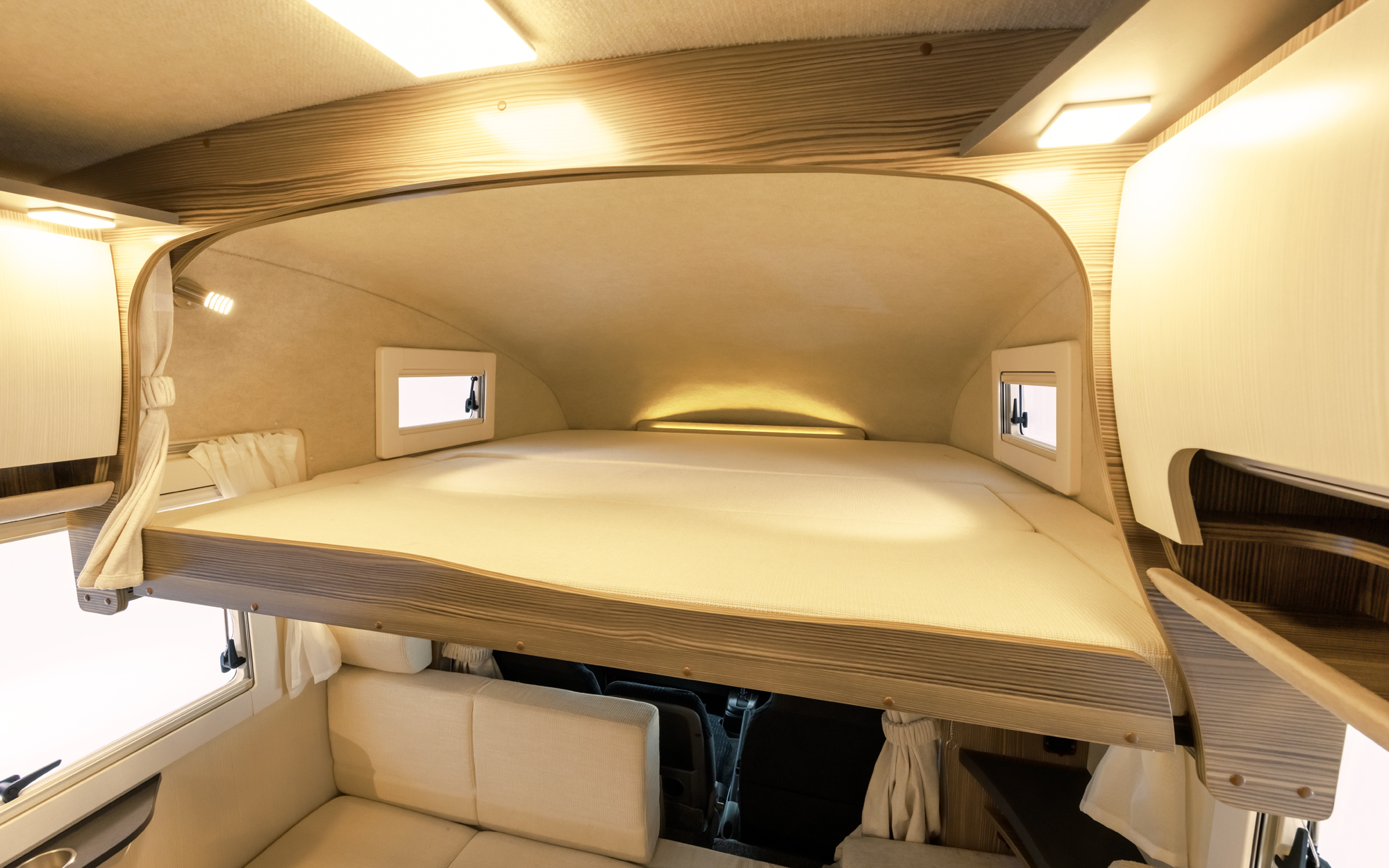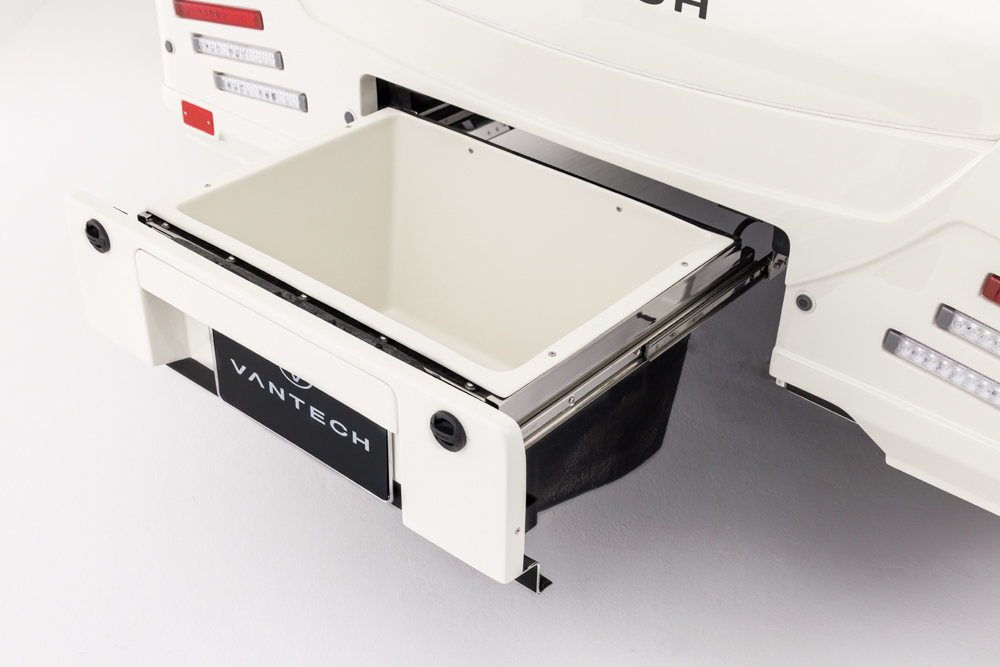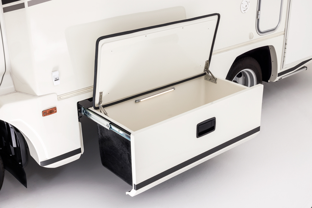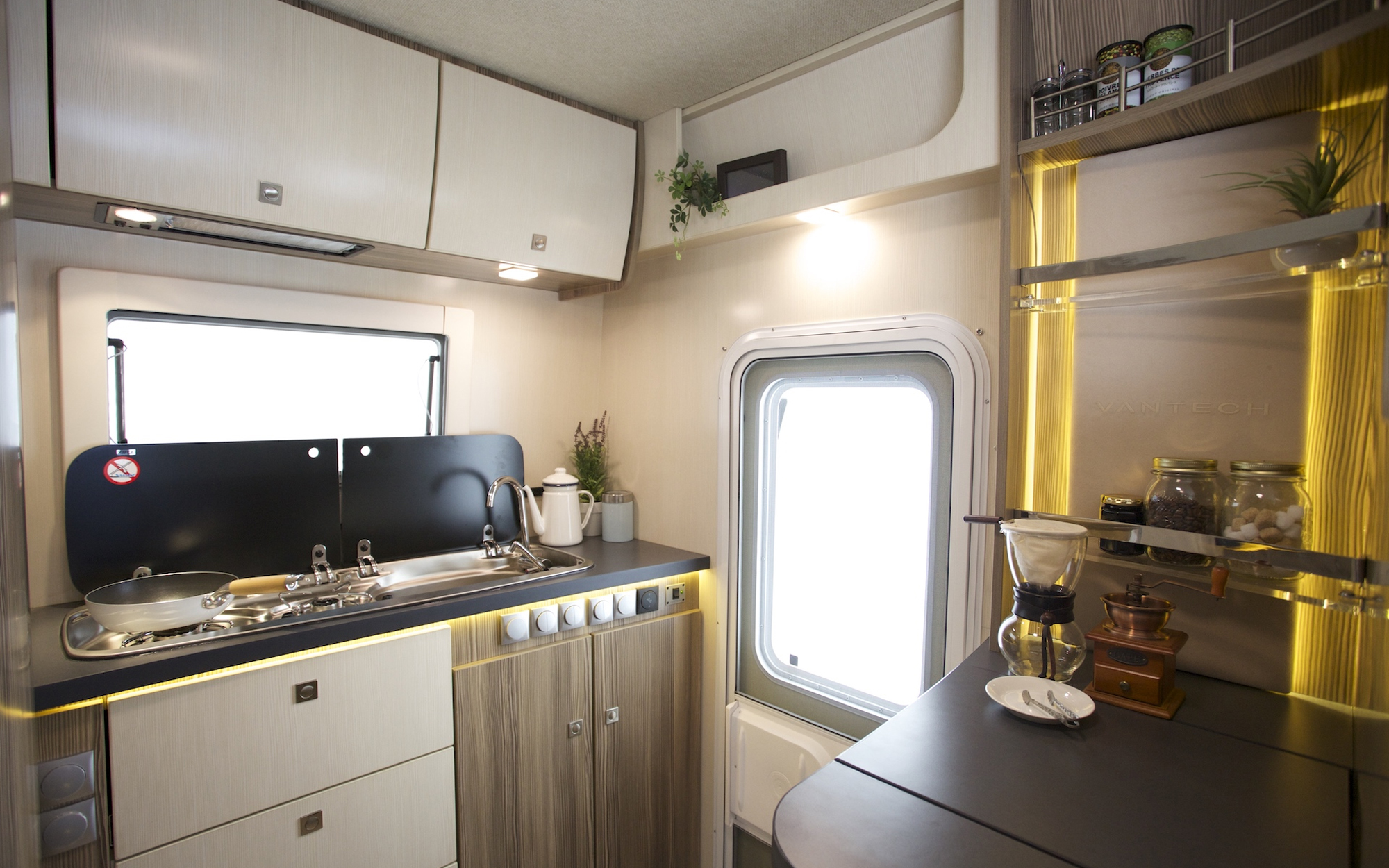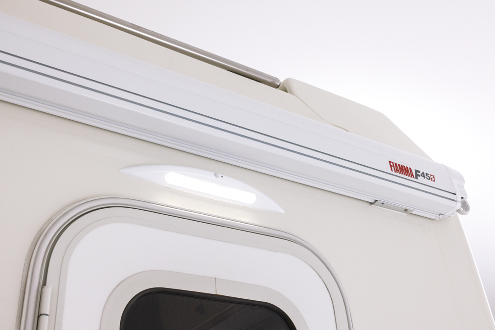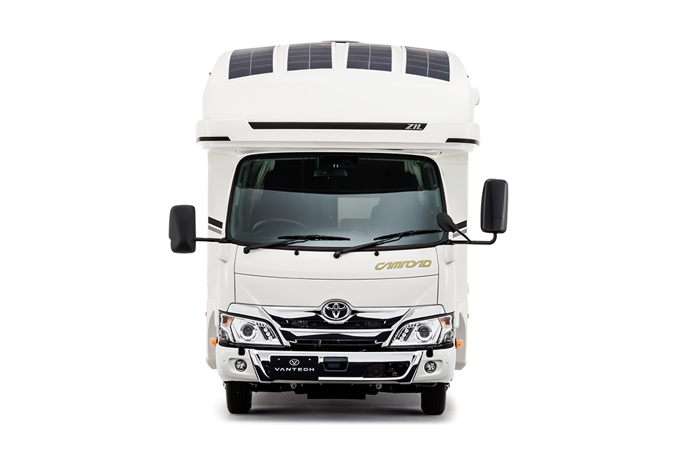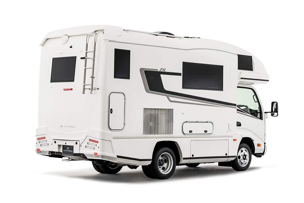 洗練されたモダンで美しいエクステリアデザイン。4本の直線的なデカールラインが躍動し、四重奏の調和がアイコニックな印象を放ちます。ZiLのボディはVANTECHが独自に開発したCSボディ。そのバンク部分のラインは、レインドリップとして機能し、雨の日の乗降時に雨垂れを防ぎます。また、ルーフラインに沿ったドリップモールは、美しいボディラインを強調すると同時に、ボディの汚れを軽減します。さらに、3.5mサイドオーニングを標準装備。これにより、快適なアウトドア空間を手軽に広げることができます。また、テールランプは高い視認性を持つLEDランプを使用しており、後続車に素早く意思を伝えることができるので、安心してドライブを楽しむことができます。