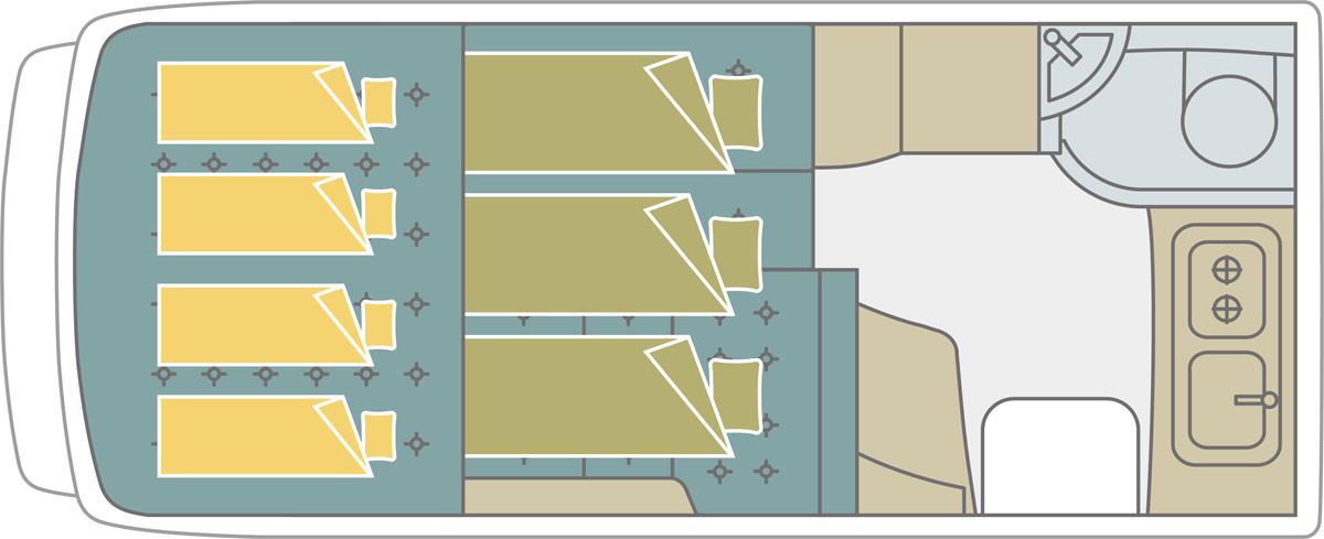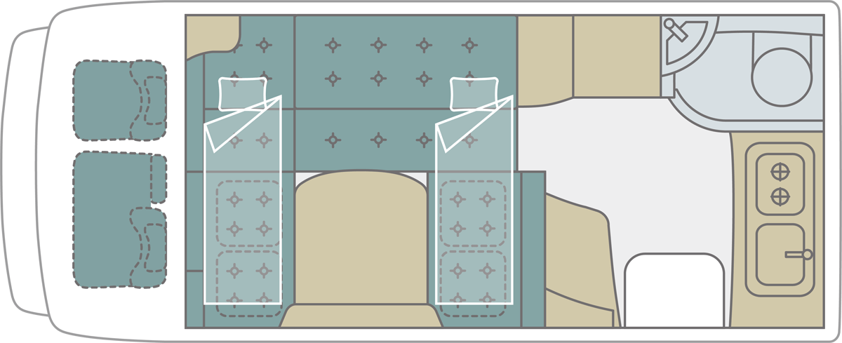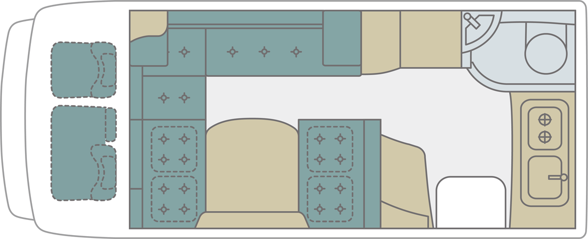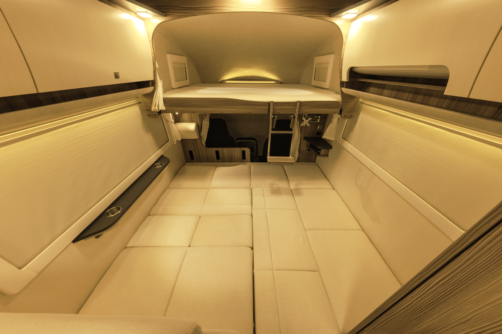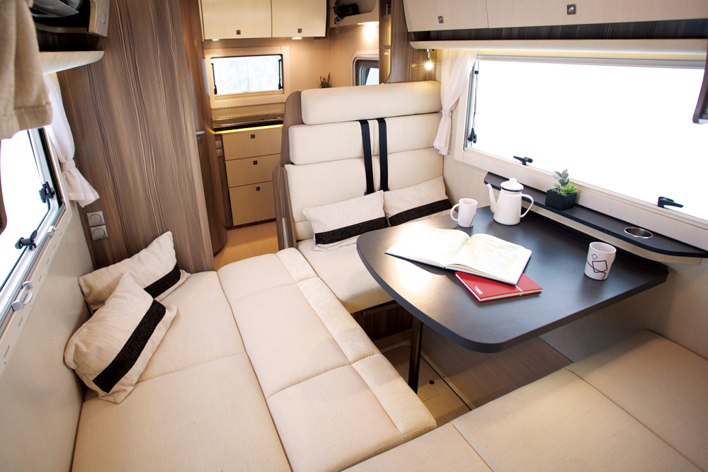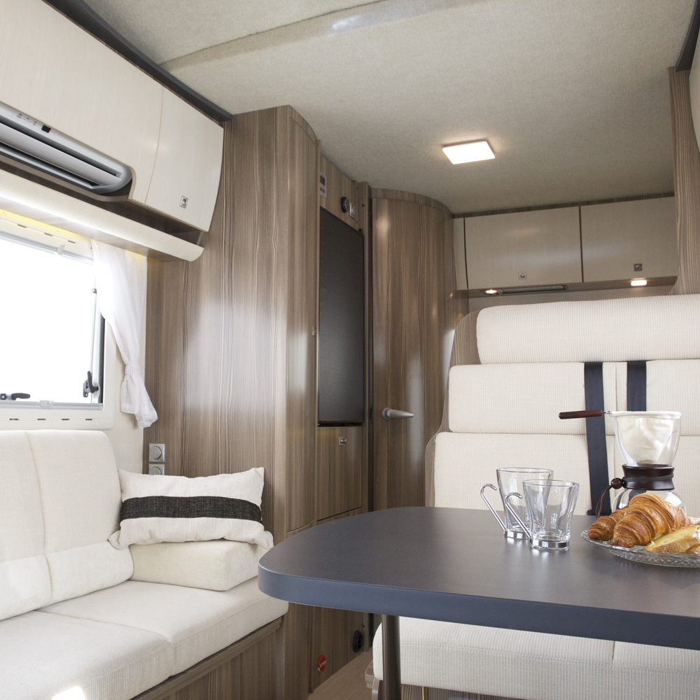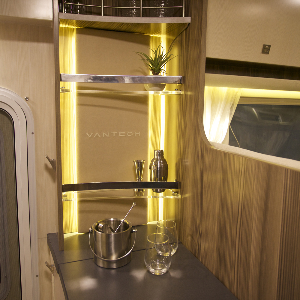 洗練されたモダンで美しいエクステリアデザイン。4本の直線的なデカールラインが躍動し、四重奏の調和がアイコニックな印象を放ちます。ZiLのボディはVANTECHが独自に開発したCSボディ。そのバンク部分のラインは、レインドリップとして機能し、雨の日の乗降時に雨垂れを防ぎます。また、ルーフラインに沿ったドリップモールは、美しいボディラインを強調すると同時に、ボディの汚れを軽減します。さらに、3.5mサイドオーニングを標準装備。これにより、快適なアウトドア空間を手軽に広げることができます。また、テールランプは高い視認性を持つLEDランプを使用しており、後続車に素早く意思を伝えることができるので、安心してドライブを楽しむことができます。