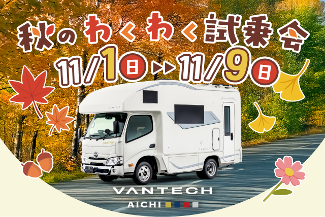 日頃よりVANTECH愛知をご利用いただきありがとうございます。店長の国立でございます。我々バンテック愛知は、長年の経験を交えて、そして楽しくお客様のキャンピングカーライフをサポートいたします。私自身、Terra500という懐かしい車両を所有しており、キャンピングカー歴は20年を超えました。キャンピングカーは人生の大切な一部になるのだと実感しております。一方で、最近のモデルには著しい進化があり、今までにない高揚感を覚えます。だからこそ、より多くの方々とキャンピングカーの楽しさを分かち合いたいのです。皆様のキャンピングカーライフが快適で安全なものになるよう、車両販売はもちろん、優秀なメカニックたちによるメンテナンスサービスもお任せくださいませ。スタッフ一同、皆様のご来店を心よりお待ちいたしております。